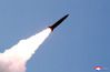 이동식 미사일발사차량(TEL)에서 발사되는 단거리 발사체의 모습. 연합뉴스 |