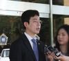 전 남편 강모(36)씨를 살해하고 시신을 훼손·유기한 혐의로 구속기소 된 고유정에 대한 첫 공판이 열린 12일 오전 제주지방법원 현관 앞에서 강씨 측 강문혁 변호사가 취재진의 질문에 답변하고 있다. 제주=뉴시스 |