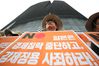 7월 28일 서울 종로구 주한일본대사관 앞에서 열린 서울지역 자주통일선봉대의 '민족자주대행진 선포 100인 기자회견'에서 참가자들이 피켓을 들고 있다./연합뉴스 |