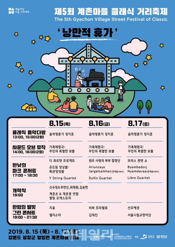 [이데일리TV 이대원PD]별빛이 쏟아지는 평창의 여름 밤, 아름다운 클래식 선율이 작은 시골마을을 감싸면 낭만적 휴가를 선물해 줄 클래식 축제가 펼쳐진다. 올해로 5회째를 맞이하는 ‘계촌마을 클래식 거리축제’는