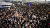 홍콩 국제 공항에서 일어난 홍콩 시위대의 공항 점거로 인해, 모든 항공편이 취소되어 관광객들은 발이 묶였다.
