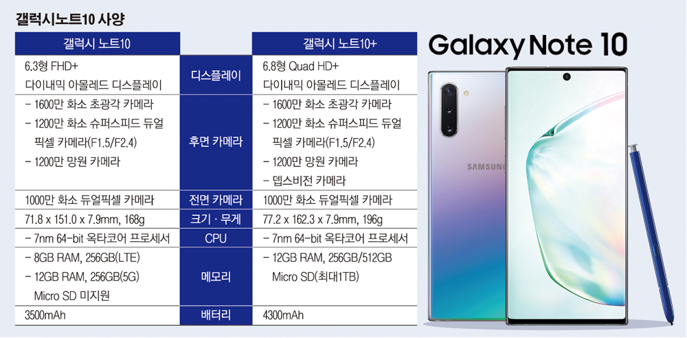 갤럭시노트10은 이번 달 19일까지 사전예약을 거쳐 23일 정식출시된다. 사전예약자는 20일부터 선개통할 수 있다.