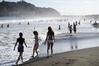 일본 가나가와현 후지사와시 에노섬 해변에서 물놀이를 즐기고 있는 사람들. /사진=AFP통신 |
