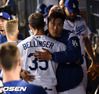 [OSEN=박준형 기자]경기종료 후 류현진이 벨린저와 이야기를 하며 동료들의 맞이하고 있다./ soul1014@osen.co.kr |