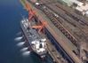 화물을 적재하면서 선박평형수를 배출하고 있는 선박의 모습. [사진=유튜브 화면캡처] |