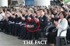 [더팩트ㅣ이원석 기자] 74주년 광복절 경축식에서 황교안 자유한국당 대표가 문재인 대통령을 향해 박수를 치지 않은 것을 두고 때아닌 여야 공방이 벌어졌다.