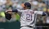 잭 그레인키가 19일(한국 시각) 미국 캘리포니아주 오클랜드의 오클랜드 콜리시엄에서 열린 2019 미국프로야구 메이저리그 오클랜드 애슬레틱스와의 경기에 선발 등판해 역투하고 있다. /AP=연합뉴스 |