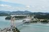 진도타워에서 본 명량해협. 오른쪽 교각 아래가 물살이 가장 센 지점이고, 그 주변이 우수영관광지다. 전라우수영은 두 교각 사이의 섬(양도) 뒤로 보이는 마을이다. 해남=최흥수 기자 |