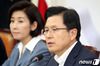 황교안 자유한국당 대표가 21일 서울 여의도 국회에서 열린 최고위원-중진의원 연석회의에서 모두발언을 하고 있다. 2019.8.21/뉴스1 © News1 김명섭 기자 |