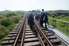 지난해 2018년 7월 남북철도점검단이 경의선 철도의 북측 연결구간 중 사천강 철도 교량을 점검하는 모습. <사진=통일부 제공> |