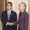 ![21일 오전 중국 베이징 구베이수이전에서 ‘제9차 한·중·일 외교장관 회의’가 열린 가운데 강경화 외교부 장관과 고노 다로 일본 외무상이 3국 회담을 마친 뒤 한일 양자 회담에 앞서 악수를 하고 있다. [연합]](http://static.news.zumst.com/images/37/2019/08/22/833349483af0452a85548157a5218413.jpg)