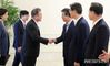 【서울=뉴시스】전신 기자 = 문재인 대통령이 22일 청와대 본관에서 열린 국립대 총장단 초청 오찬에 참석하며 전국 국공립대학교 총장협의회 회장인 김영섭 부경대 총장과 인사하고 있다. 2019.08.22.