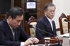 단호한 文대통령 - 문재인 대통령이 22일 청와대에서 굳은 표정으로 한일 군사정보보호협정(지소미아)과 관련해 국가안전보장회의(NSC) 상임위원회의 회의 내용을 보고받고 있다. 왼쪽은 이낙연 국무총리.청와대 제공 |