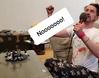 사진 속 맥컬리 컬킨은 편한 홈웨어차림으로 마이크를 들고 다른 손은 허공을 향해 주먹질을 하며 인상을 쓰고있다. 그의 앞에는 탁자 위에 올려진 레고로 만든 전함이 놓여있다.