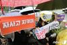 지난달 24일 오후 서울 종로구 서울시교육청 앞에서 한양대학교 사범대학부속고등학교 학부모들이 자율형사립고등학교 재지정 취소 철회를 촉구하는 모습/사진=뉴스1 |
