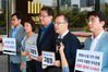 금융정의연대, 약탈경제반대행동, 키코공동대책위원회 등 경제시민사회단체 회원들이 23일 오후 서울 서초구 서울중앙지검 앞에서 금리연계 파생결합증권(DLS) 사기 판매 혐의로 우리은행을 고발하는 고발장을 접수하기 앞서 입장을 밝히고 있다. 연합뉴스 |