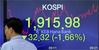 26일 오전 10시 현재 코스피 지수는 전 거래일보다 1.71% 하락한 1914.94를 기록하고 있다. 코스닥 지수는 전 거래일보다 2.81% 하락한 591.86을 기록하며 다시 600선을 내줬다.
