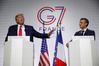 도널드 트럼프(왼쪽) 미국 대통령은 주요7개국(G7) 정상회의 무대에서 연일 북한의 경제 잠재력을 부각하며 대북 유화 메시지를 발신했다. 트럼프 대통령이 26일(현지시간) 에마뉘엘 마크롱 프랑스 대통령과 프랑스 비아리츠에서 열린 기자회견에 참석하고 있다. [로이터] |