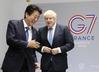 26일 프랑스 비아리츠 G7 정상회담에서 존슨 영국 총리와 아베 총리가 대화를 나누고 있다. |