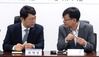 28일 국회 의원회관에서 열린 더불어민주당 일본 수출규제 대응 당정청 상황점검 및 대책위원회 2차 회의에서 최재성 민주당 일본특위 위원장(왼쪽)과 김상조 청와대 정책실장이 대화를 하고 있다. 사진=서동일 기자 |
