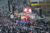박근혜 대통령 탄핵무효 국민저항 총궐기 국민대회가 11일 오후 서울 시청 앞 서울광장에서 열렸다. 행진을 마친 집회참가자들이 서울광장으로 돌아와 화면영상을 보고 있다. 김무성 유승민 의원 모습과 함께 배신정치 모범사례란 글이 떠 있다. / 2017.03.11.토 사진공동취재단 신인섭 기자 / 사진=사진공동취재단 |