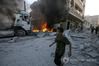 시리아 정부군의 공격으로 불타는 이들립 주의 건물 |
