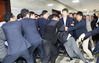더불어민주당 의원과 보좌관들이 지난 4월 26일 새벽 여야4당의 수사권조정법안을 제출하기 위해 자유한국당 당직자들이 점거하는 국회 의안과 진입을 시도하면서 몸싸움을 벌이고 있다. (사진=연합뉴스) |