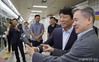 공덕역 U+5G 갤러리에서 하현회 LG유플러스 부회장(오른쪽)과 김태호 서울교통공사 사장이 증강현실 작품을 감상하고 있는 모습/사진제공=LG유플러스 |