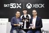 SK텔레콤이 마이크로소프트와 5세대(5G)이동통신 기반 클라우드 게임 엑스클라우드를 출시한다. (왼쪽부터) 유영상 SK텔레콤 유영상 MNO사업부장, 이상혁(페이커) SK텔레콤 e스포츠팀 T1 선수, 카림 초우드리 마이크로소프트 클라우드 게임 총괄 부사장이 엑스클라우드를 선보이고 있다. |