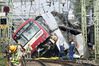 【요코하마=AP/뉴시스】5일 일본 도쿄 인근 요코하마 철길에서 열차와 트럭이 충돌해 현장에서 관계자들이 대응하고 있다. 현지 경찰과 소방당국은 트럭 한 대가 철길을 건너려고 진입하다가 열차와 충돌해 기관차가 탈선하고 트럭에 불이 붙었으며 30여 명이 다쳤다고 밝혔다. 2019.09.05. |