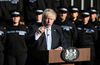 존슨 총리는 이날 자신의 뒤에 신입 경찰들을 세워놓고 연설을 진행했다.