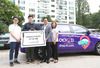 고충림 KT 전략채널본부장(왼쪽 셋째)이 KT샵 여기오지 서비스로 KT 갤럭시 폴드 5G 1호 가입자 이우성(왼쪽 둘째)씨에게 단말을 전달했다. |