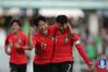 나상호(왼쪽)가 투르크메니스탄전에서 골을 넣고 손흥민과 함께 기뻐하고 있다. 제공 | 대한축구협회 |