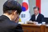 조국 신임 법무부 장관이 10일 오전 서울 성북구 한국과학기술연구원(KIST)에서 현장 국무회의에서 문재인 대통령의 발언을 듣고 있다. 청와대사진기자단 |