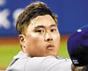 최근 회색으로 머리카락을 염색한 류현진이 15일 뉴욕 메츠전에서 카메라를 응시하는 모습. /LA다저스 포토블로그 |