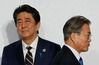 사진=문재인(오른쪽) 대통령이 지난 6월 28일 오전 일본 오사카에서 열린 주요 20개국(G20) 정상회의 공식 환영식에서 의장국인 일본의 아베 신조 총리와 악수한 뒤 이동하고 있다. 연합뉴스 |