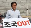 이학재 자유한국당 의원이 16일 국회 본청 앞에서 조국 법무부 장관 사퇴, 문재인 대통령 사과를 촉구하는 단식농성을 하고 있다. 오대근기자 |