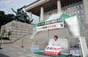 이학재 자유한국당 의원이 16일 오전 국회 본청 앞 계단에서 조국 법무부 장관 사퇴를 요구하며 단식투쟁을 하고 있다. (사진=연합뉴스) |