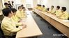 조명래 환경부 장관(오른쪽부터 네번째)이 17일 오후 서울 중구 서울스퀘어 상황실에서 열린 아프리카돼지열병 상황점검회의에 참석해 남은 음식물의 돼지 먹이 금지 등 환경부의 ASF 확산방지책을 점검하고 향후 대책을 논의하고 있다. |