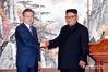 【평양=뉴시스】평양사진공동취재단 박진희 기자 = 문재인 대통령과 김정은 국무위원장이 19일 오전 평양 백화원 영빈관에서 '9월 평양공동선언' 발표 후 악수하고 있다. 2018.09.19. photo@newsis.com <저작권자ⓒ 공감언론 뉴시스통신사. 무단전재-재배포 금지.> |