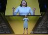 자유민주당 전당대회에서 연설하는 조 스윈슨 대표 [AP=연합뉴스] |
