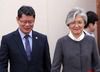 강경화 외교부 장관(오른쪽)과 김연철 통일부 장관이 18일 국회에서 열린 외통위 전체회의에 참석하며 대화를 나누고 있다. <사진=연합뉴스> |