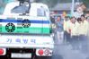 진영 행정안전부 장관(오른쪽)이 18일 오전 인천 강화대교 아프리카돼지열병(ASF) 거점소독시설을 방문해 축산차량 방역실태 운영상황 등을 점검하고 있다. 연합뉴스 |