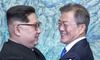 문재인 대통령과 김정은 북한 국무위원장이 지난해 4월 27일 오후 판문점 평화의 집에서 열린 남북정상회담에서 한반도의 평화와 번영, 통일을 위한 판문점 선언문에 서명 후 포옹하고 있다. 연합뉴스 |