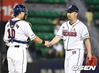 [OSEN=잠실, 곽영래 기자] 20일 오후 서울 잠실 야구장에서 '2019 신한은행 MY CAR KBO리그' 두산 베어스와 KIA 타이거즈의 경기가 열렸다.8회초 2사 두산 유희관이 마운드를 내려오기 전 박세혁과 악수를 나누고 있다. / youngrae@osen.co.kr |