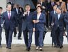 이날 서울 공항에는 진영 행정자치부 장관과 조세영 외교부 1차관, 이해찬 더불어민주당 대표와 이인영 원내대표 등이 환송에 나섰고, 해리 해리스 주한 미국대사 역시 환송 행사를 함께했다. 오후 1시17분께 헬기에서 내린 문 대통령 내외는 진 장관 등 마중 나온 당정 관계자들과 악수를 한 뒤 공항 귀빈실에서 10여분 정도 대화를 나눈 것으로 전해졌다. 이후 대화를 마치고 전용기로 향하는 길에서는 파안대소하는 모습도 포착됐다.