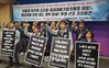 금속노조와 조선업종노조연대가 23일 오전 울산시청 프레스센터에서 ‘위험의 외주화 금지법’ 제정 등을 촉구하며 구호를 외치고 있다. │백승목 기자 |