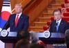 【서울=뉴시스】전신 기자 = 문재인 대통령이 6월30일 청와대 본관에서 도널드 트럼프 미국 대통령과 공동기자회견을 하고 있다. 2019.06.30. photo1006@newsis.com |