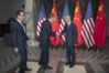 중국의 류허(오른쪽) 부총리가 지난 7월 31일 중국 상하이의 시자오(西郊)빈관에서 미국측과 무역협상에 들어가기 전 로버트 라이트하이저 미 무역대표부(USTR) 대표와 악수를 나누고 있다. 왼쪽은 스티븐 므누신 미 재무장관. /AP 연합뉴스 |