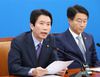 더불어민주당 이인영 원내대표(왼쪽)가 24일 오전 국회에서 열린 원내대책회의에서 발언하고 있다. 연합뉴스 |